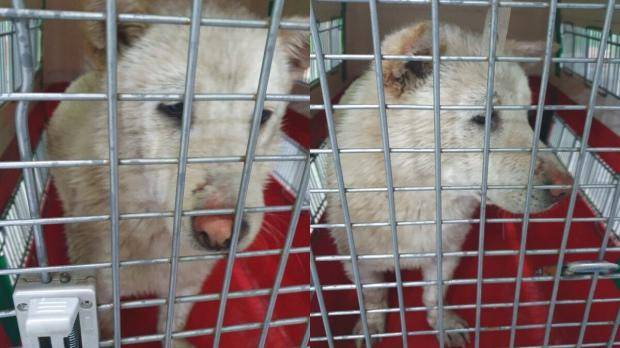 자신의 처지를 아는지 풀이 죽은 모습으로 케이지 구석에 앉아 눈동자를 굴리는 모습이 안쓰럽기만 하다.