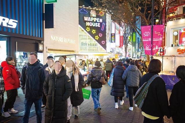 1월 11일 오후, 수은주가 곤두박질친 강추위에도 서울 중구 명동 거리에는 활기가 넘쳤습니다. 양손 가득 쇼핑백을 든 외국인 관광객들이 먹거리 노점이 늘어선 명동 메인 거리를 가득 채웠습니다. 한국어보다 외국어가 훨씬 많이 들렸습니다. 서울 지하철 4호선 명동역 입구에 울려퍼지는 ‘길거리 포교’ 스피커에서도 다양한 외국어가 번갈아 나왔습니다. 캐리어 바퀴 굴러가는 소리도 흔하게 들렸습니다. 명동역 개찰구 앞 캐리어 보관소는 일찌감치 만석이었습니다.