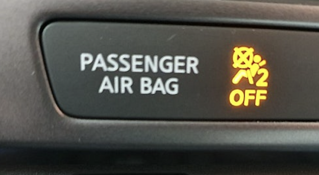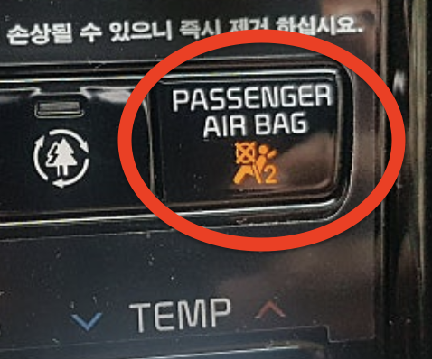 시동을 걸었을 때, 계기판이나 센터페시아에 'PASSENGER AIR BAG OFF'라는 경고등에 불이 들어왔는지 반드시 눈으로 확인해야 합니다.