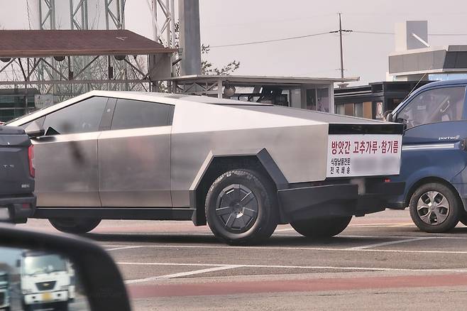 국내에서도 정식 출시 준비 정황이 포착된 바 있지만 아직 정확한 출시 시기는 묘연한 상황. 이러한 가운데 경제적 여력이 있는 누군가는 비싼 추가 비용을 감당하면서도 사이버트럭을 직수입해 타고 있다. 연예인 시아준수가 최근 사이버트럭의 정식 등록을 마쳤으며, 이 외에도 몇 대의 사이버트럭이 한국에 있는 것으로 알려졌다. 최근에는 해당 차량을 다소 독특한 목적으로 운행하는 모습이 포착돼 화제다.