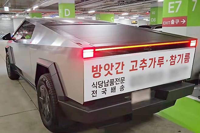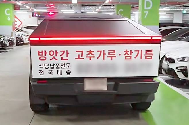 최근 각종 온라인 커뮤니티에는 ‘실시간 난리 난 국내 사이버트럭 근황’이라는 제목의 영상이 올라왔다. 영상에는 개인이 직수입한 것으로 보이는 사이버트럭 차량의 모습이 담겼다. 해당 차량의 후면부에는 독특하게도 방앗간을 홍보하는 광고 랩핑이 부착돼 시선을 끈다. 간결한 광고 문구와 연락처만 적혀 있어 더욱 눈에 띌 듯하다.