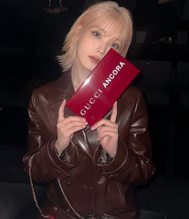아이유 님은 브라운 컬러의 가죽 셋업을 착용해 트렌디하면서도 세련된 무드를 연출했어요. 광택이 도는 고급스러운 소재감 덕분에 자연스럽게 멋스러움이 배가되었죠. 셋업 특유의 정돈된 실루엣이 단정하면서도 도회적인 분위기를 강조해 주었어요.