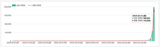 하루만에 10만 명의 신규 구독자가 생겼다…!