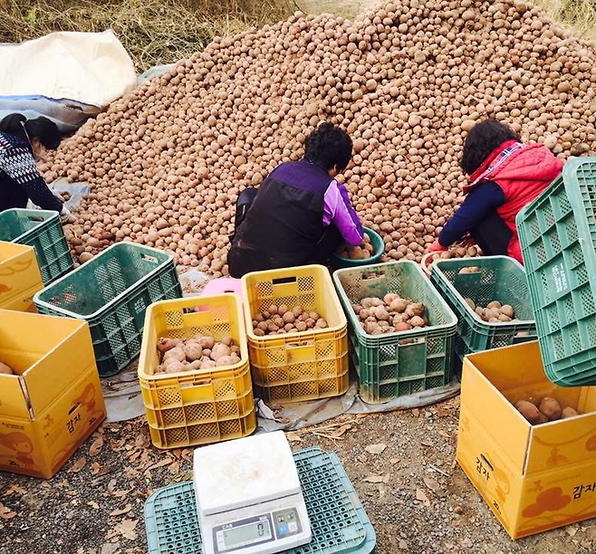 서울에서 대학을 졸업하고 회사를 다닌 지 6개월쯤 됐을 때였어요. 그때 아버지께서 "올해 감자가 안 팔려서 그냥 다 묻어야 할 것 같은데, 네가 한번 팔아볼래?"라며 연락을 주셨죠. 식량 주권과 종자 다양성 문제에 진심이던 아버지는 우리가 흔히 아는 하얀색 수미감자가 아니라, 다양한 색깔의 토종 감자를 재배하셨거든요. 거의 전 재산을 들여서 토종 감자 종자를 보유하면서까지 말이죠. 솔직히 저도 서울 생활이 버겁게 느껴지던 때라, "그래, 한번 해보자." 싶었고, 춘천으로 내려갔습니다.