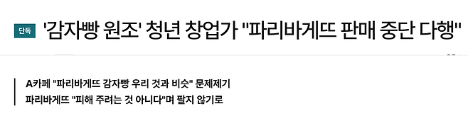 Q. 감자빵의 인기와 더불어, 2020년 대기업의 표절 논란이 떠오르면서 곤혹스러운 일을 겪기도 하셨죠.