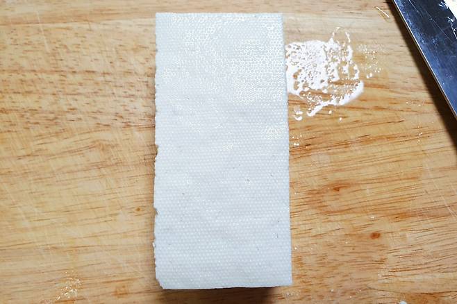 두부는 키친타월로 물기를 조금 닦아주시고요.