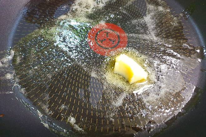 달궈진 팬에 버터 1스푼 잘 녹여주세요. 버터가 없을때는 식용유도 가능합니다.