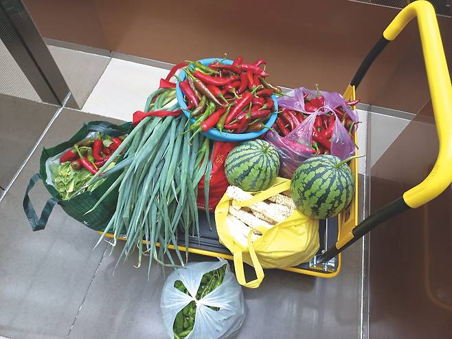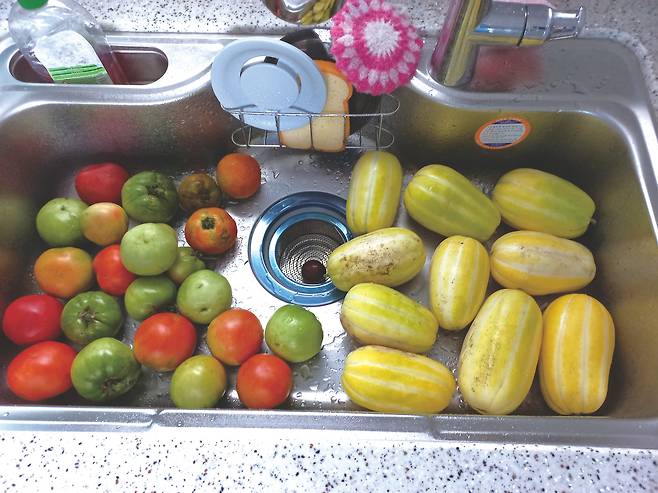 먼저, 넝쿨 올라갈 지주대를 세운 뒤 오이를 심었다. 이어 옥수수, 가지, 상추, 케일, 고추, 파, 호박, 수세미, 땅콩, 고구마, 토란 등의 어린 모종과 순을 정성스레 심었다. 널따란 두둑에 수박과 참외도 심었다. 농약은 한 번도 치지 않았다. 심지어 농약 치는 장비도 없었다. 그런데 신기하게도 수확은 풍성했고 열매는 달았다. 주말에만 내려갈 수 있었기에 잡초가 온 밭에 가득했지만, 잡초 사이로 익은 과실을 찾아 먹는 재미도 쏠쏠했다. 땅이 참외랑 잘 맞았는지 정말로 달고 컸다.