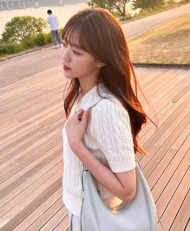 해질녘 감성 자극하는 화이트 니트룩…잔잔한 무드와 부드러운 실루엣의 조화