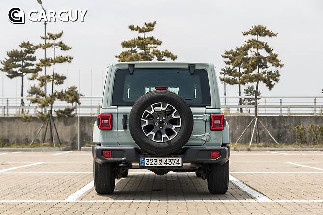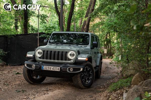 시승차는 2018년 첫 출시한 4세대(JL), 그 중에서도 2023년 한 차례 부분변경을 거친 모델이다. 부분변경을 통해 나타난 외관상 변화는 전면부에 치중됐다. 지프의 상징과도 같은 7-슬롯 그릴이 대표적이다. 기존보다 테두리가 얇아지고 그릴 주변을 블랙으로 처리했다.
