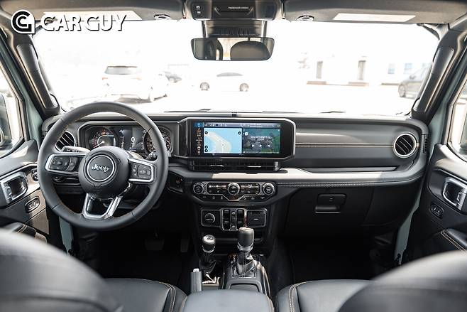 기어 변속 레버는 여전히 기계식이다. 전자식 기어 변속 시스템(SBW) 채택이 자동차 업계 트렌드지만 랭글러에는 이게 어울린다. 기어 레버 상단에는 윌리스 MB 디자인을 담아 지프 특유의 감성을 자극한다. 안전사양도 강화했다. 1·2열 사이드 커튼 에어백이 추가됐다.