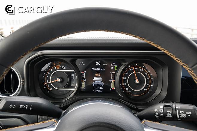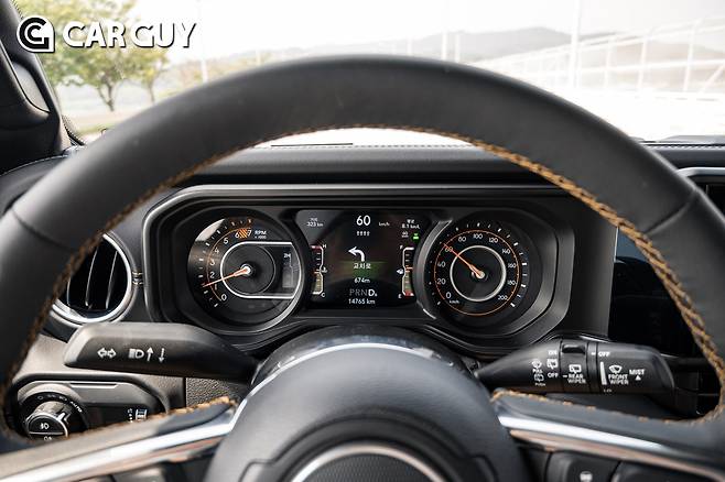 기어 변속 레버는 여전히 기계식이다. 전자식 기어 변속 시스템(SBW) 채택이 자동차 업계 트렌드지만 랭글러에는 이게 어울린다. 기어 레버 상단에는 윌리스 MB 디자인을 담아 지프 특유의 감성을 자극한다. 안전사양도 강화했다. 1·2열 사이드 커튼 에어백이 추가됐다.