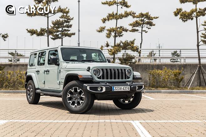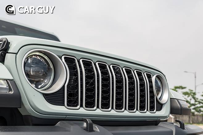 시승차는 2018년 첫 출시한 4세대(JL), 그 중에서도 2023년 한 차례 부분변경을 거친 모델이다. 부분변경을 통해 나타난 외관상 변화는 전면부에 치중됐다. 지프의 상징과도 같은 7-슬롯 그릴이 대표적이다. 기존보다 테두리가 얇아지고 그릴 주변을 블랙으로 처리했다.