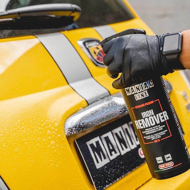 철분제거제(아이언리무버)는 플라스틱·고무·도장면에 사용 가능한 화학 약품으로, 브레이크 디스크·패드 주변에 쌓인 철분과 오염물질을 빠르고 안전하게 녹여준다. 점착된 브레이크 더스트·금속가루도 고압수만으로는 해결이 어렵지만, 철분제거제를 뿌리면 화학반응으로 대부분 용해되어 즉각적으로 소음 원인을 해결하는 효과를 얻을 수 있다.