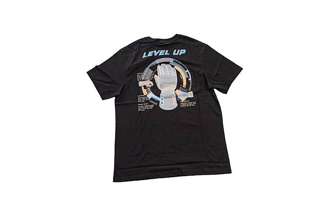 100% 면 소재를 사용해 부드러운 착용감이 특징인 로얄엔필드의 캐주얼 반팔 티셔츠. 올블랙 티셔츠 위에 파랑 형광으로 프린트된 아트웍이 포인트가 된다.