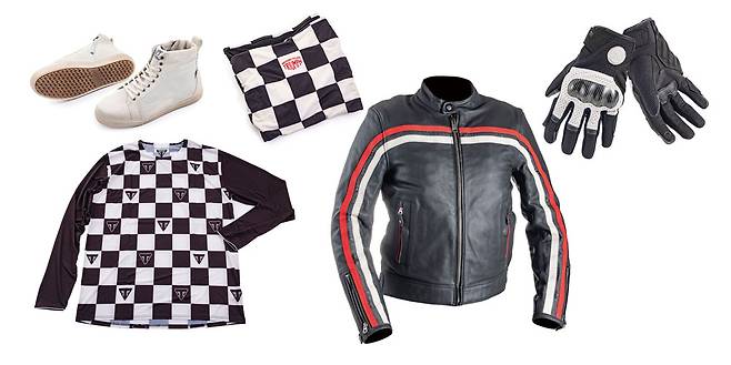 레이스 체커기 패턴이 적용된 트라이엄프의 모토저지. 블랙 & 본, 옐로우 & 네이비, 두 가지 색상으로 출시되었다. 안에 보호대를 착용하고 오프로드에서 착용하는 것뿐만 아니라 일상에서 캐주얼 의류들과 함께 활용할 수 있는 제품이다.