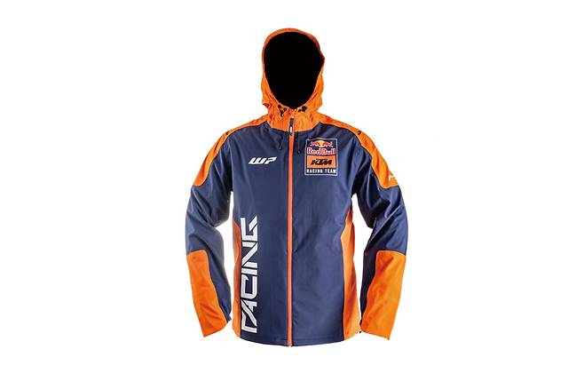 2024년도 신상 KTM 팩토리팀 레플리카 바람막이. 전천후로 사용할 수 있어 매년 KTM 라이더들에게 많은 사랑을 받는 제품이다. KTM 팩토리팀 후원사들의 로고를 입은 이 재킷을 입고 있으면 나도 그 일원이 된 것 같은 느낌을 받는다.