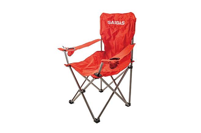 가스가스의 강렬한 레드 컬러가 적용된 간편하게 접었다 펼 수 있는 가스가스 접이식 의자. 크기가 크고 팔걸이 높이를 조절 할 수 있어 접이식 의자 중에서도 매우 편한 쪽에 속한다. 컵홀더에 소형 병따개가 기본으로 장착되어 있다.