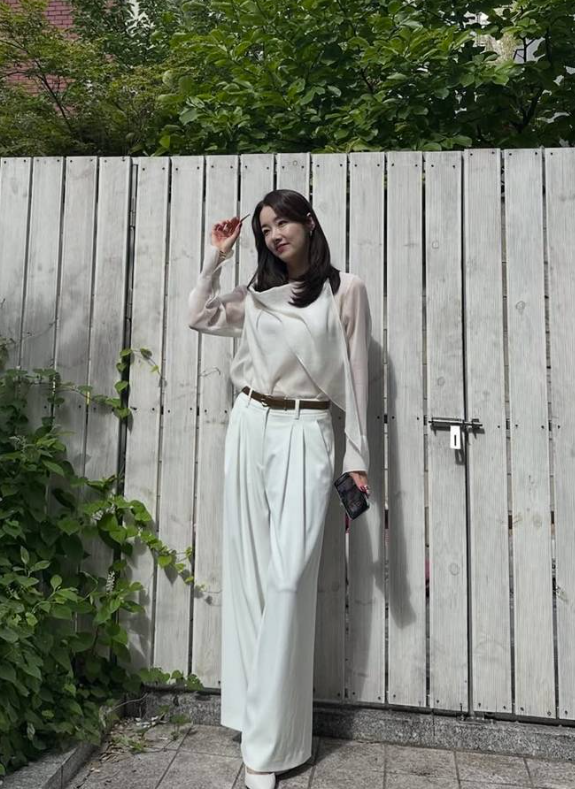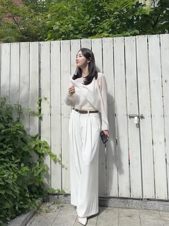 소이현은 언밸런스 드레이핑 디테일이 돋보이는 시스루 블라우스에 하이웨이스트 주름 디테일의 화이트 와이드 팬츠를 매치해 길고 슬림한 실루엣을 강조했어요. 그녀의 스타일링은 가을의 은은한 분위기와 잘 어울려 더욱 눈길을 끌었습니다. 👗👖