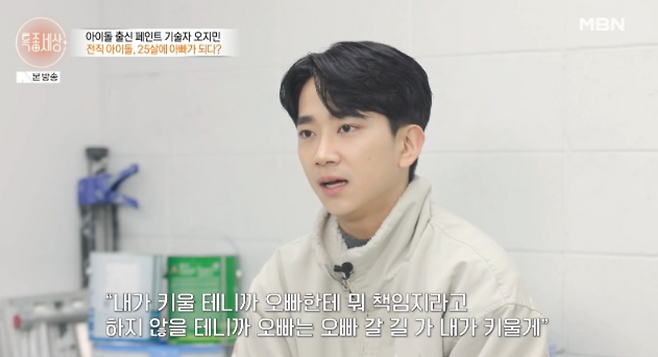 두 사람은 그렇게 25살, 21살의 나이로 한 생명의 부모가 됐다. 오지민은 생계를 위해 집 근처 페인트 가게를 무작정 찾아가 일을 가르쳐 달라고 했다며 그렇게 일을 시작한 지 3년이 지났다고 설명했다.