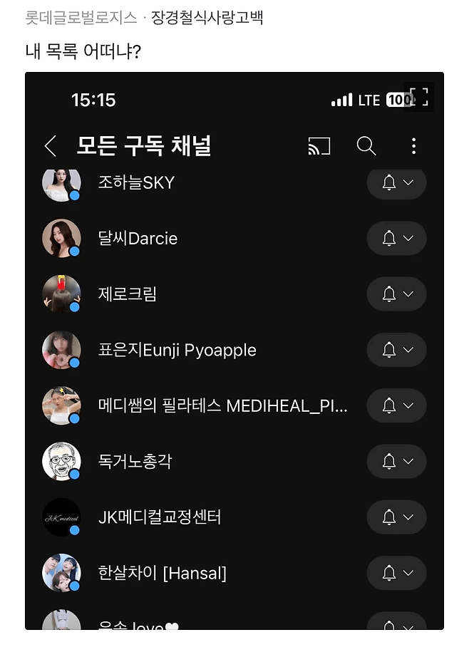 그 와중에 본인 구독 목록 오픈한 롯데다니는 분.. ㅋㅋㅋㅋㅋㅋㅋㅋㅋㅋㅋ