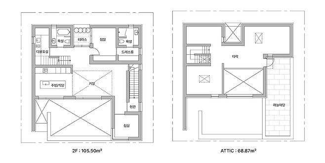 선큰마당과 오픈천장, 다락과 하늘마당으로 이어지는