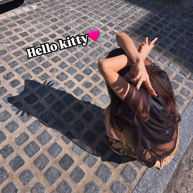 사진 속 박한별은 햇살이 뜨겁게 내리쬐는 돌길 위에 쪼그려 앉아 그림자를 활용한 '헬로키티' 퍼포먼스를 연출했다. 두 팔을 교차한 채 귀를 표현한 모습과 손끝에서 만들어진 수염 같은 그림자가 마치 헬로키티 실루엣을 떠올리게 하며 유쾌함을 더한다.