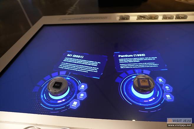 SF 영화속에서만 나올 것 같은 화면! CPU칩을 화면 위에 놓으면 칩에 대한 설명이 화면에 자세히 펼쳐집니다.