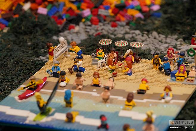 브릭으로 제주를 표현해 준 작품을 보았는데요. 산방산 앞 유채꽃밭, 주상절리, 흑돼지, 돌하르방 등 다양한 표현이 가능한 것을 보았어요.