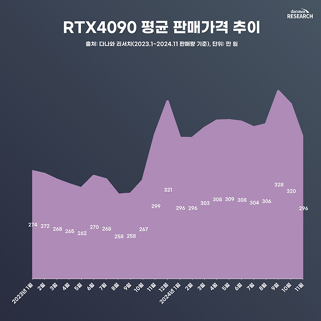 RTX 4090 1년 내내 300만 원 위에서 놀았다
