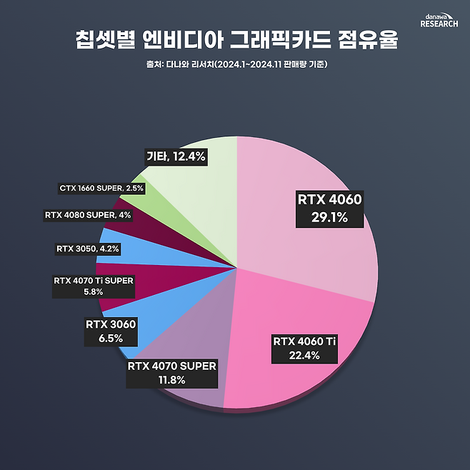 그나마 다행스러운 일은 RTX 4090을 제외한 나머지 제품들은 아직 가격 변동이 크지 않고, 2024년내 소폭 하락했다는 것이다. 소비자들이 가장 많이 찾는 RTX 4060의 경우 특가 쿠폰과 카드 할인까지 겹치는 최대 할인 조건에서는 30만 원 초반에 구입할 수 있는 경우도 있다.