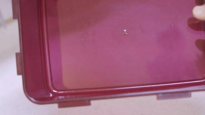 밀가루 속 입자가 김치통에 밴 냄새 입자를 쏙쏙 흡수하여 냄새가 말끔하게 사라졌답니다.
