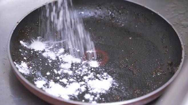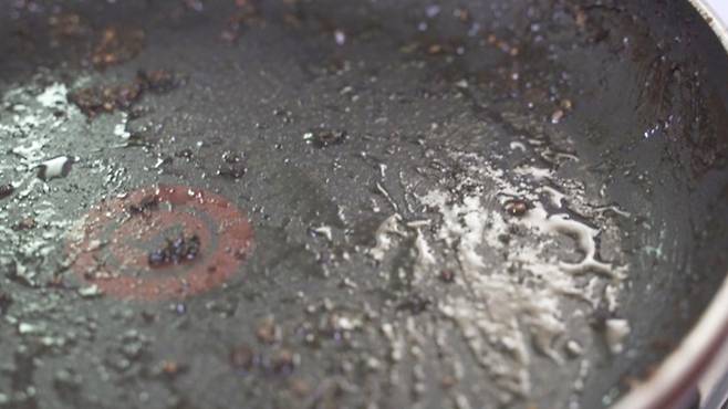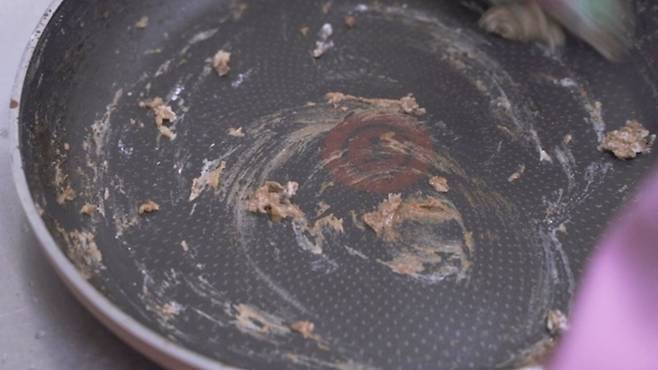밀가루로 한번 닦았을 뿐인데, 프라이팬이 다시 뽀득뽀득 변했어요.