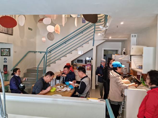 단체객들은 주로 같은방에서 지내기 때문에 가이드가 그날 걸을 거리나 기상등을 고려하여 출발시간과 기상시간을 정해주는 편입니다.