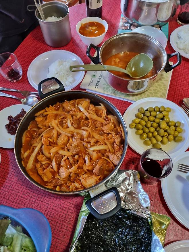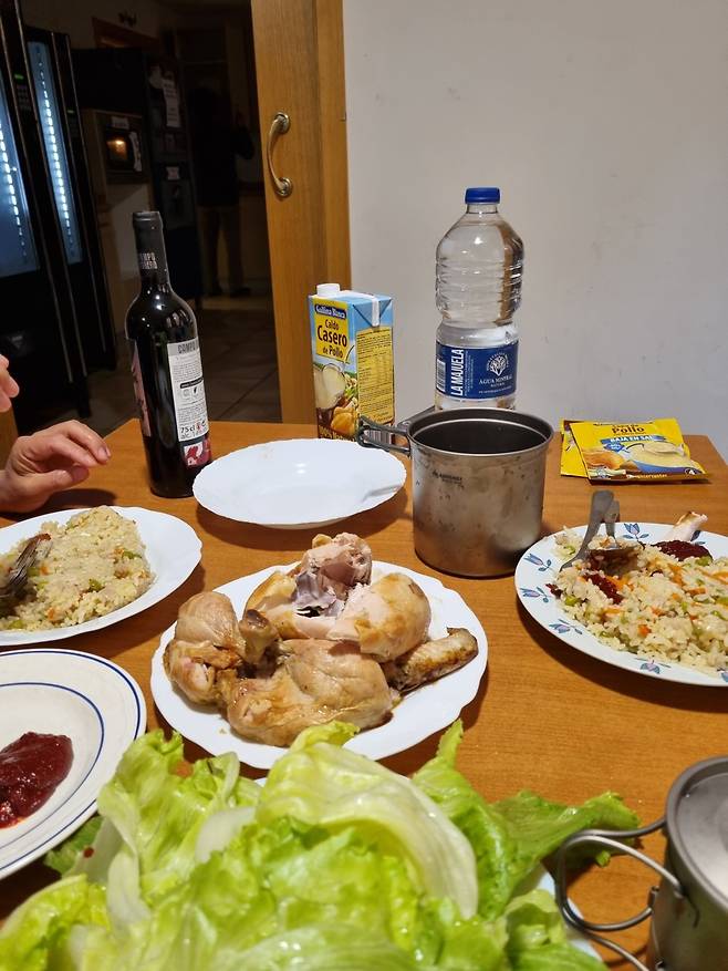 이후 다음날 간식, 아침식사, 조리를 위한 식재료 구입 등을 위해 마트 장을 보는데, 조리가 가능한 주방이 갖춰진 알베르게가 있는 반면 전자렌지 정도만 갖춰져서 간편 요리만 가능한 곳. 그리고 아예 아무것도 해먹을 수 없지만 식당이 갖춰진 알베르게 등 알베르게 스타일에 따라 그리고 순례자 스타일에 따라 다양하게 식사를 즐깁니다.