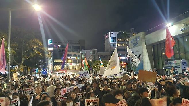 "끝이 안 보여" 경찰도, 도민도 놀란 '윤석열 즉각 퇴진' 제주 집회