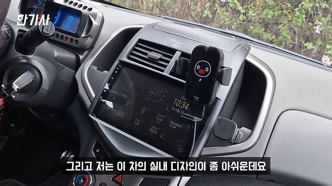 또 저는 이 차의 실내 디자인이 좀 아쉬운데요. 다 굉장히 딱딱한 플라스틱으로 되어 있습니다. 소형차에서 뭐 고급감을 바라는 건 아니지만, 세련되게 만들 수는 있잖아요. 근데 이 차에는 고급감, 세련됨 이런 거랑 전혀 거리가 먼 재질을 채택하고 있어서 조금 아쉬운 게 있습니다.