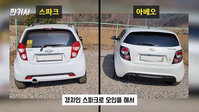 이 차량을 아베오인지 모르고 경차인 스파크로 오인을 해서 그게 좀 서럽다고 하시는 차주님들이 굉장히 많으신데, 이 차의 뒷면 후면부를 보면 스파크와 거의 구분을 못 할 정도로 비슷하게 생겼습니다. 제가 이제 이 차를 샀을 때 주위 반응이 '스파크가 있는데 왜 이걸 또 사냐'라는 얘기도 몇 번 들었어요.