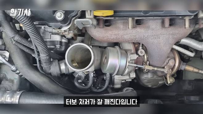 또 이 차 고질병이 터보 차저가 잘 깨진다는 건데요. 요새 양산 차들에서는 좀 보기 힘든 케이스인데, 이 차는 마찬가지로 한 10만 km 전후로 해서 터보 차저에 크랙이 가면서 부스트 압력이 떨어지고 출력 제한이 걸리는 그런 고질병이 있습니다.