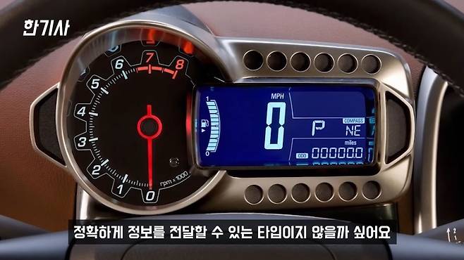 그나마 그중에서 가장 마음에 드는 거는 계기판이 보통 타코미터, RPM 게이지가 아날로그로 돼 있고 속도계가 디지털로 돼 있는데, 이 방식이 가장 운전자에게 정확하게 정보를 전달할 수 있는 타입이지 않을까 싶어요.