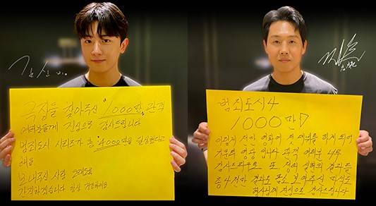 마동석은 "답답한 속을 시원하고 통쾌하게 풀어들이는 영화를 위해 영혼을 갈아넣어 열심히 하고 있다"고 밝혔고, 김무열은 "주신 사랑을 잊지 않고 새겨 더 좋은 연기와 작품을 선보이겠다"고 약속했다.