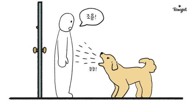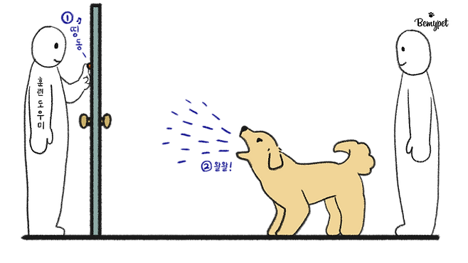 강아지를 짖게 만드는 이유를 눈으로 확인해 주세요. 강아지에게 '너가 왜 짖는지 확인했어!'라는 신호는 주는 행동이에요. 예를 들어, 초인종을 눌렀다면 보호자가 문 쪽을 쳐다보면 됩니다.