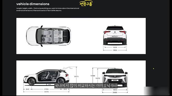 르노 전기차 세닉(Scenic)이 한국 소비자들의 관심을 끌고 있다. 크기와 실내 공간이 패밀리카로 적합하며, 특히 독특한 2열 시트 구성이 주목받고 있다.