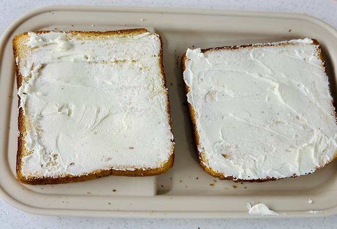 마담로익 크림치즈를 슥슥 발라 줍니다.