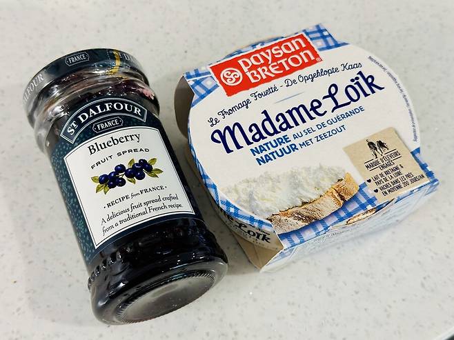 아무튼 마담로익 크림치즈와 샹달프 블루베리잼 준비.