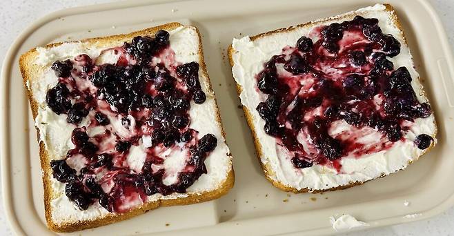 그 위에 샹달프 블루베리잼을 얹어 발라주면 끝