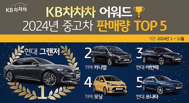 올해 KB차차차에서 가장 많이 팔린 중고차는 그랜저로 조사됐다.