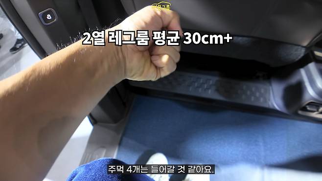 이러한 구조는 2열 탑승객에게 다소 답답한 느낌을 줄 수 있다는 우려도 있으나, 실제 레그룸 측정 결과 누구나 편하게 앉았을 때도 30cm가 넘는 여유로운 공간을 확보하고 있는 것으로 나타났다. 이는 흔히 비교하는 '주먹 4개' 정도가 들어갈 수 있는 충분한 공간이다.