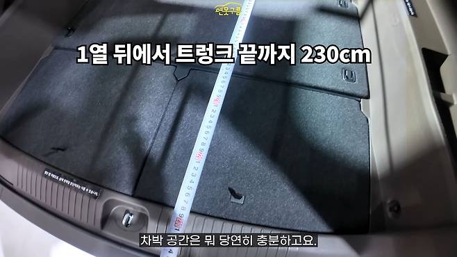 가장 주목할 만한 점은 1열 뒤에서 2열을 거쳐 트렁크 끝까지 이어지는 공간이 2m 30cm에 달한다는 것이다. 이 길이는 성인이 편안하게 누울 수 있는 충분한 공간으로, 차박 활용에 최적화된 구조라고 할 수 있다.