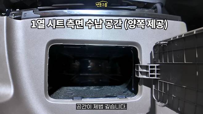 PV5의 가장 큰 매력 중 하나는 예상치 못했던 숨은 수납공간이다. 과거 봉고와 같은 상용차에서나 볼 수 있었던 수납공간이 PV5에도 마련되어 있다. 이 숨은 공간은 팔 한 마디가 다 들어갈 정도로 깊어, 마치 금고처럼 귀중품을 보관하거나 다양한 용품을 수납하기에 매우 유용한 것으로 평가된다.